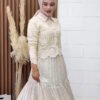 Élégance et raffinement sont au rendez-vous avec cette robe longue d’un blanc crème, accompagnée d’une veste en dentelle délicate. La robe, fluide et sophistiquée, est conçue pour allier confort et style, tandis que la veste en dentelle ajoute une touche de romantisme et de féminité.