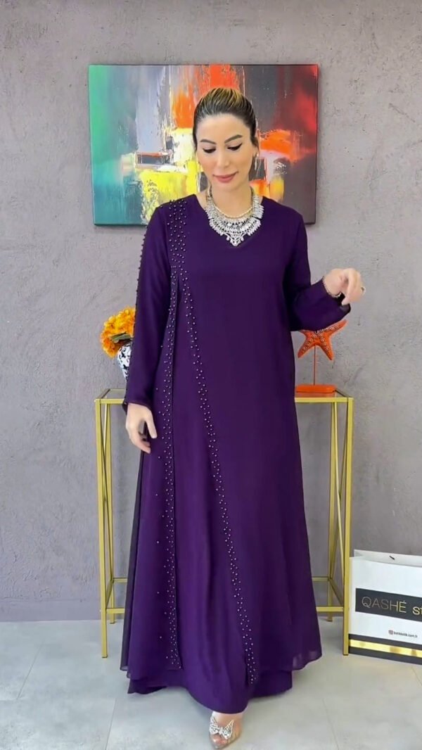 Ajoutez une touche de sophistication à votre garde-robe avec cette robe longue d’un violet profond.