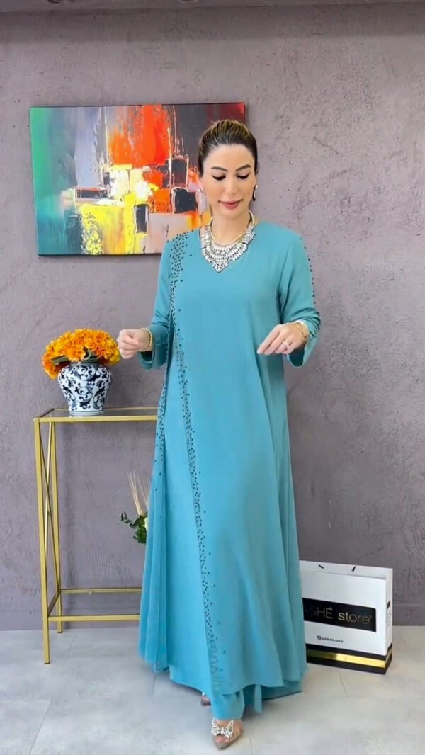 Ajoutez une touche de sophistication à votre garde-robe avec cette robe longue d’un magnifique bleu clair. Cette pièce se distingue par son allure à la fois féminine et moderne. Le tissu léger et fluide offre un confort optimal. Les manches, larges ajoutent un charme supplémentaire à ce modèle intemporel, et un confort supplémentaire. Cette robe est parfaite pour des occasions formelles ou des sorties élégantes.